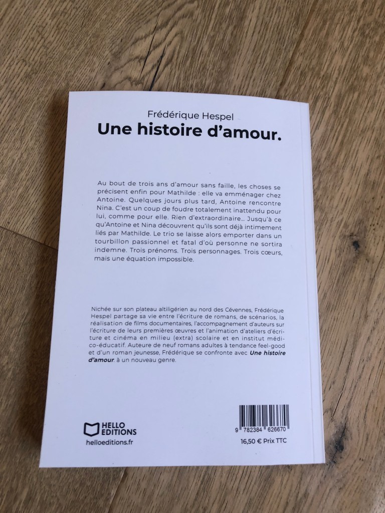 Le 8 septembre (ce vendredi donc !) sort mon nouveau roman « Une histoire d’amour. ». Autant vous dire que je tremble car c’est un genre un peu nouveau pour moi, même si ce récit est le tout premier que j’ai écrit, mais sous forme de scénario…