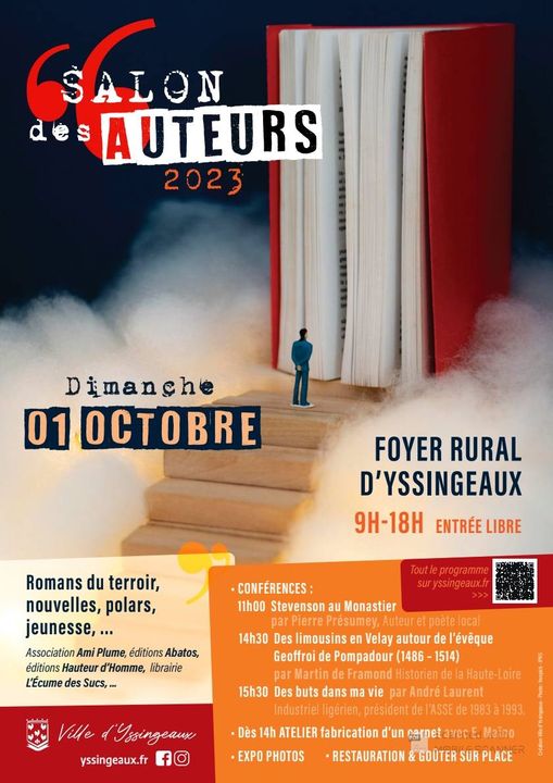 Le dimanche 1er Octobre (mon mois prĂ©fĂ©rĂ© = celui de mon anniversaire đ) je serai au salon des auteurs Ă Yssingeaux de 9h Ă 18h.