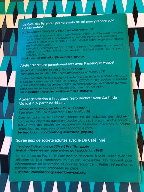 ° Le samedi 4 Novembre j’anime un atelier d’écriture à l’Echappée de Saint-Julien-Chapteuil. Il reste quelques places si l’envie d’écrire avec moi vous amuse !